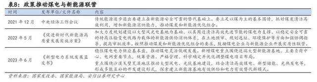 轉(zhuǎn)型不止囿于眼前的煤電,更在于牽手新能源。隨著我國碳達峰、碳中和目標(biāo)的提出,安全、清潔、經(jīng)濟的階段性不平衡問題日益突出,煤電與新能源間的發(fā)展矛盾逐漸成為新型電力系統(tǒng)建設(shè)中的重要議題,國家層面對煤電和新能源的協(xié)同發(fā)展也在進行積極的思考與研究。2021 年 12 月中央經(jīng)濟工作會議,國家首次提出要立足以煤為主的基本國情,抓好煤炭清潔高效利用,增加新能源消納能力,推動煤炭和新能源優(yōu)化組合。2022 年 5 月,國家發(fā)改委、國家能源局聯(lián)合印發(fā)《促進新時代新能源高質(zhì)量發(fā)展實施方案》,提出加大力度規(guī)劃建設(shè)大型風(fēng)光電基地,并按照推動煤炭和新能源優(yōu)化組合的要求,鼓勵煤電企業(yè)與新能源企業(yè)開展實質(zhì)性聯(lián)營。政府指導(dǎo)意見從“推動煤炭和新能源優(yōu)化組合”到“鼓勵煤電企業(yè)與新能源企業(yè)開展實質(zhì)性聯(lián)營”,方向更加明確、要求更為具體,為下一步產(chǎn)業(yè)結(jié)構(gòu)優(yōu)化調(diào)整指明道路。
