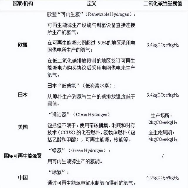 2020年12月29日,國(guó)內(nèi)行業(yè)組織提出《低碳?xì)?、清潔氫與可再生能源氫的標(biāo)準(zhǔn)與評(píng)價(jià)》,當(dāng)中指出在單位氫氣碳排放量方面,低碳?xì)涞拈撝禐?4.51千克二氧化碳當(dāng)量/千克氫,清潔氫和可再生氫的閾值為4.9千克二氧化碳當(dāng)量/千克氫,同時(shí)可再生氫要求其制氫能源為可再生能源。