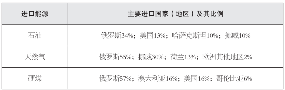 表 2021年德國化石能源主要進(jìn)口國家及其占比