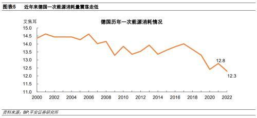 1)能源消費(fèi)方面,2022年德國(guó)一次能源消費(fèi)量同比下降3.8%,降至12.3艾焦耳;2022年德國(guó)天然氣消費(fèi)量同比下降15.2%,降至2.8艾焦耳。