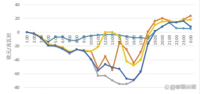 數(shù)據(jù)顯示,今年前八個(gè)月,歐洲國家電價(jià)為負(fù)的總時(shí)間長達(dá)7841小時(shí),有些時(shí)段甚至跌至-20歐元/兆瓦時(shí)。想象一下,發(fā)電廠這邊拼命發(fā)電,電多得用不完,而市場(chǎng)電價(jià)卻需要倒貼錢。
