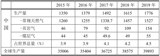 中國天然氣生產(chǎn)以常規(guī)天然氣為主,并有少量非常規(guī)天然氣如頁巖氣和煤層氣。