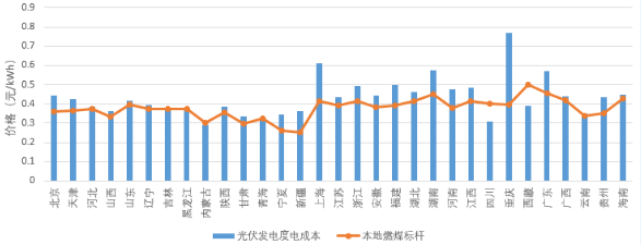 圖2 光伏發(fā)電度電成本與燃煤標桿電價對比