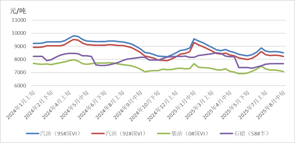 8月中旬,IEA上調(diào)全球石油供應(yīng)過(guò)剩預(yù)期,美國(guó)能源信息署(EIA)預(yù)測(cè)2025年美國(guó)原油日產(chǎn)量將創(chuàng)1341萬(wàn)桶紀(jì)錄,夏季駕駛旺季臨近尾聲原油需求下降預(yù)期增強(qiáng),中美關(guān)稅暫停措施再延長(zhǎng)90天等因素推動(dòng)國(guó)際油價(jià)延續(xù)下跌態(tài)勢(shì)。然而,市場(chǎng)對(duì)美聯(lián)儲(chǔ)9月降息的預(yù)期增強(qiáng),阿拉斯加美俄峰會(huì)并未取得實(shí)質(zhì)性進(jìn)展,俄烏局勢(shì)不確定性推升地緣風(fēng)險(xiǎn)溢價(jià),受上述因素影響,國(guó)際油價(jià)跌幅有所收窄。